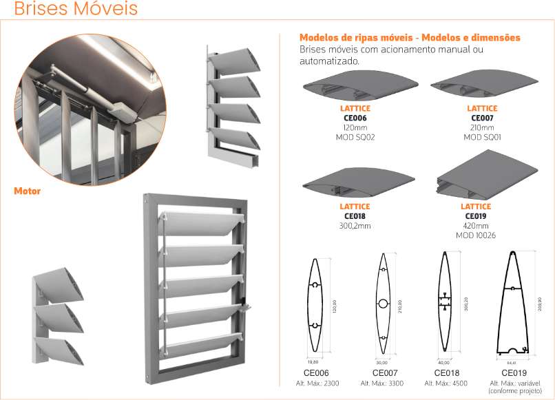 Sistema de proteção solar de fácil instalação que reduz o superaquecimento dentro do ambiente nos meses mais quentes, além de regular a intensidade da luz com base na incidência do sol. A Expalum® oferece dois sistemas de brises: fixo e móvel para janelas e fachadas. Ambos com proteção solar e perfeita visão. Estrutura de treliças de alumínio extrudado de 100mm e suportes de alumínio extrudado. De fácil montagem, atende ao estilo funcional da arquitetura moderna, proporcionando uma ventilação perfeita para os recintos.