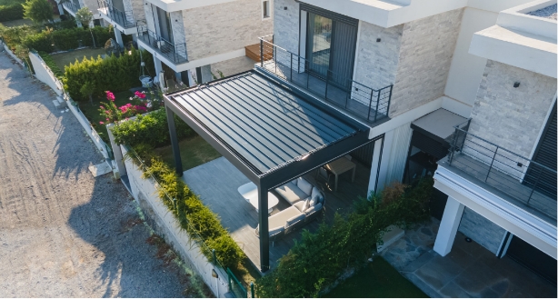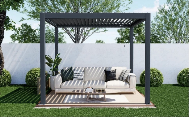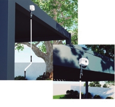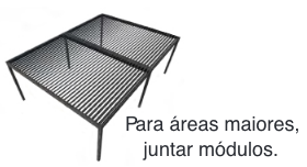Sistema de sombreamento hermético com persianas rotativas. É feito inteiramente de alumínio, oferece proteção contra a luz solar em dias ensolarados, pois as lâminas se movem de 0° a 90° permitindo o uso máximo das pérgolas em diferentes condições climáticas. Possui sistema de drenagem de água da chuva. Com design moderno em combinação com 3 variedades de cores, é ideal para instalações comerciais (restaurantes, cafés, pátios, etc) e residenciais (jardim, churrasqueira, áreas de lazer, etc.). Sistema de abertura e fechamento manual (manivela) Type 150 ou sistema automático (elétrico) Type 175.
