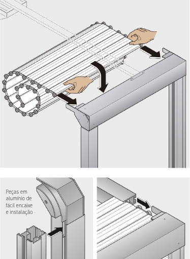 Mais seguro e resistente, pois conta com um sistema de travamento exclusivo; além disso, o acionamento é duplo, por controle remoto e manivela.