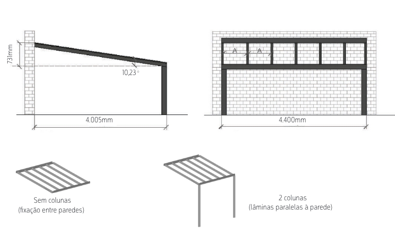 Perfis laterais triangulares 1 e 2 lados, coluna horizontal, Iluminação led, sensor de chuva e/ou vento, aquecimento por infravermelho, transmissor e controle central, sistema de controle de música e áudio via bluetooth, controle de smartphone e tomada adicional. Opções de sistemas de fechamento em vidro guilhotina, painéis de vidro dobráveis, painéis de vidro deslizantes e cortina zip.